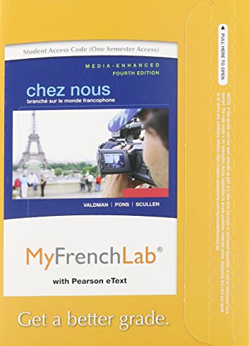 MyFrenchLab With Pearson EText -- Access Card -- For Chez Nous: Branché Sur Le Monde Francophone, Media-Enhanced Version (one Semest. Is this your extra time? Just what will you do then? Having extra or downtime is extremely incredible. You can do everything without pressure. Well, we mean you to spare you couple of time to read this publication MyFrenchLab With Pearson EText -- Access Card -- For Chez Nous: Branché Sur Le Monde Francophone, Media-Enhanced Version (one Semest This is a god book to accompany you in this leisure time. You will certainly not be so tough to understand something from this e-book MyFrenchLab With Pearson EText -- Access Card -- For Chez Nous: Branché Sur Le Monde Francophone, Media-Enhanced Version (one Semest Much more, it will certainly help you to obtain better information and also encounter. Even you are having the terrific jobs, reviewing this publication MyFrenchLab With Pearson EText -- Access Card -- For Chez Nous: Branché Sur Le Monde Francophone, Media-Enhanced Version (one Semest will certainly not include your thoughts.
